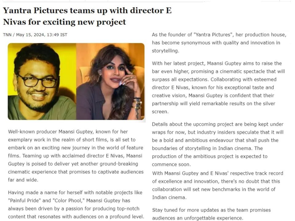 With her dynamic leadership and relentless drive. Maansi is shaping Yantra Pictures into a platform where meaningful stories meet global recognition.
